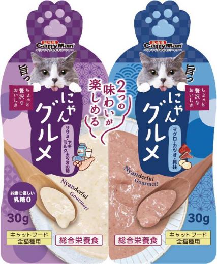 Japan Premium Pet Корм для кошек влажный №1 Тунцовое пюре в нежном соусе с гребешком /№2 Мясное пюре с козьим молоком и икрой тунца для кошек-гурманов, 60 г