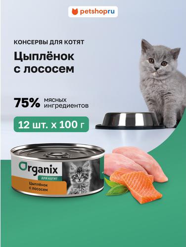 Organix Консервы для котят Цыпленок с лососем, влажный корм, 12 штук по 100 г